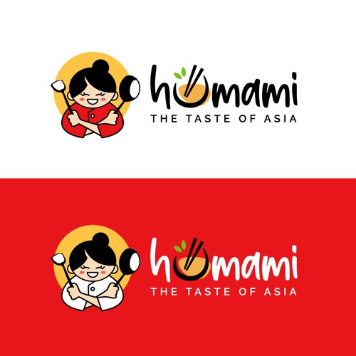 The logo is for a small asian restaurant. With sushi, japanese, chinese, korean an thai food. The name humami has multip