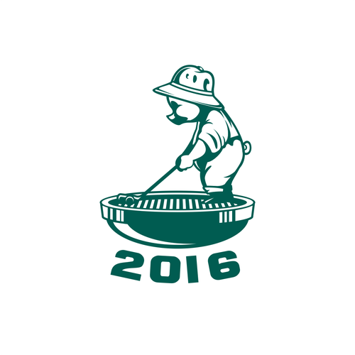 Take the Pinehurst putterboy logo but make it look like a pig standing on a Half drum Bbq (with bucket hat and posing...