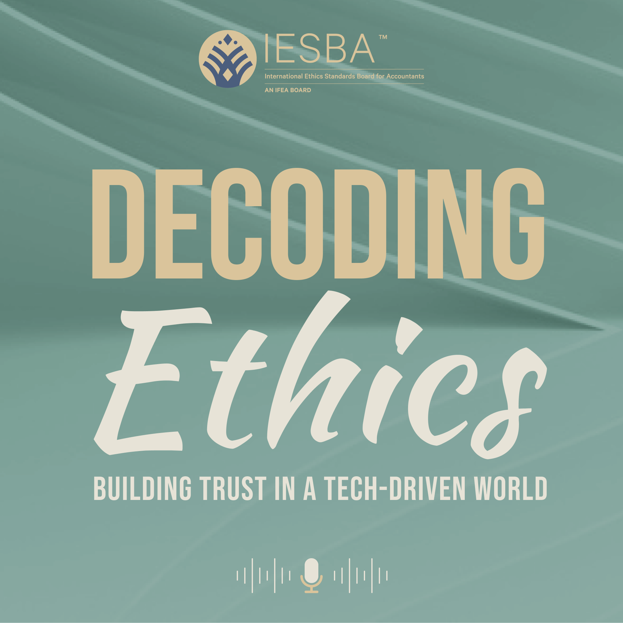 Bold, sleek podcast cover for "Decoding Ethics - building trust in a tech driven world"